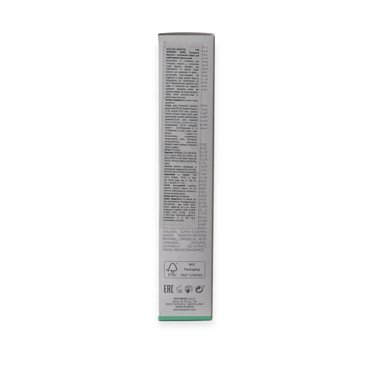 Очищувальна емульсія для комбінованої та жирної шкіри Skeyndor Essential Line Cucumber Cleansing Emulsion 250 мл