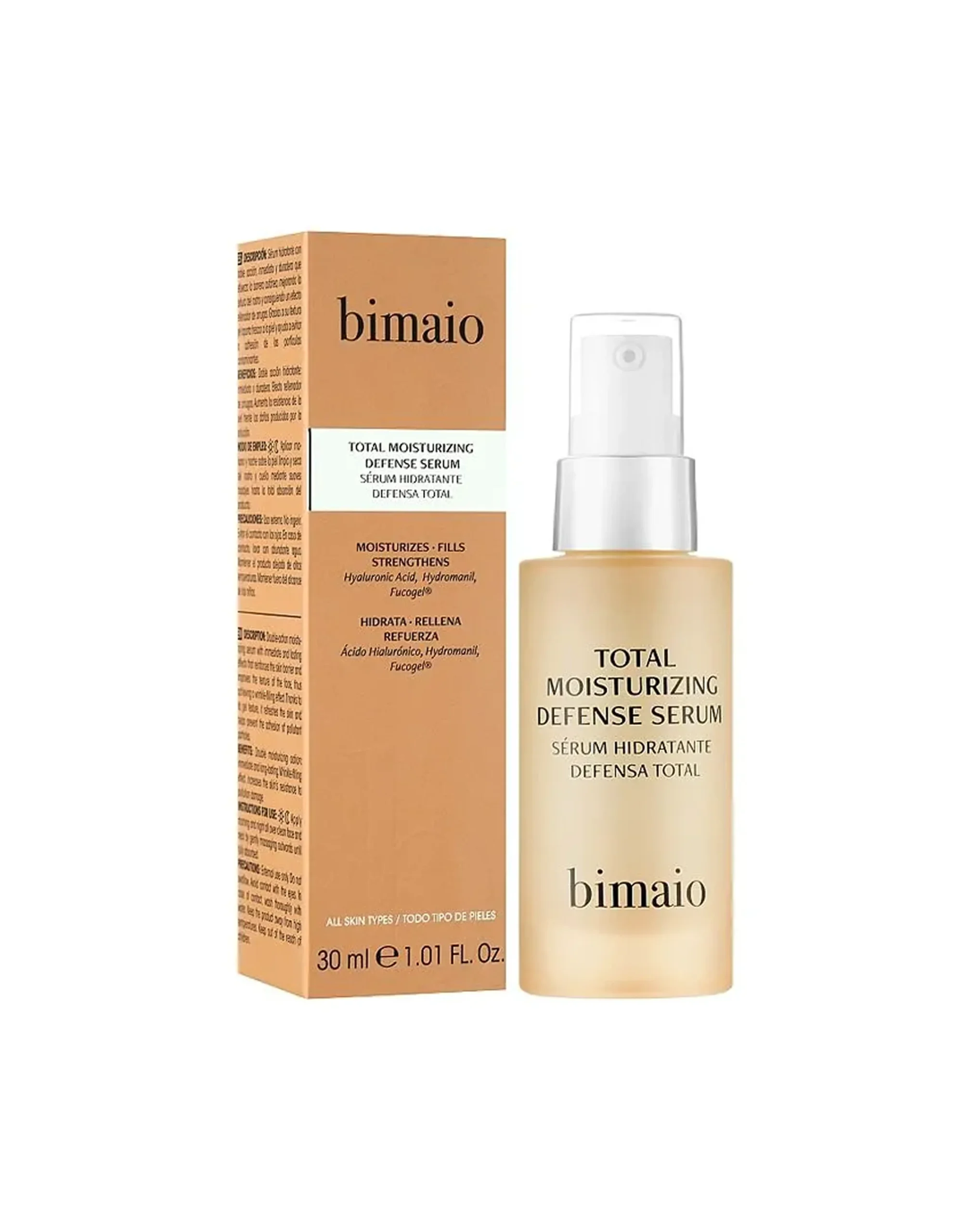 Use Bimaio Moisturizing Serum to restore skin balance. The product has a high level of active moisturizing ingredients that help retain moisture in the skin, improve its structure and tone, and protect it from the negative effects of external factors. The product maintains the elasticity of the epidermis, strengthens its turgor, preventing premature age-related changes. Features of Bimaio Total Moisturizing Defense Serum:enriched with hyaluronic acid, hydromanil and fucogel, which together normalize the skin's hydrobalance, reduce flaking and dryness, restore comfort;refreshes and tones the epidermis;makes it smooth and soft to the touch, gives a natural glow;fills wrinkles and lines from the inside, preventing the appearance of new ones;starts the processes of cellular renewal of the skin.