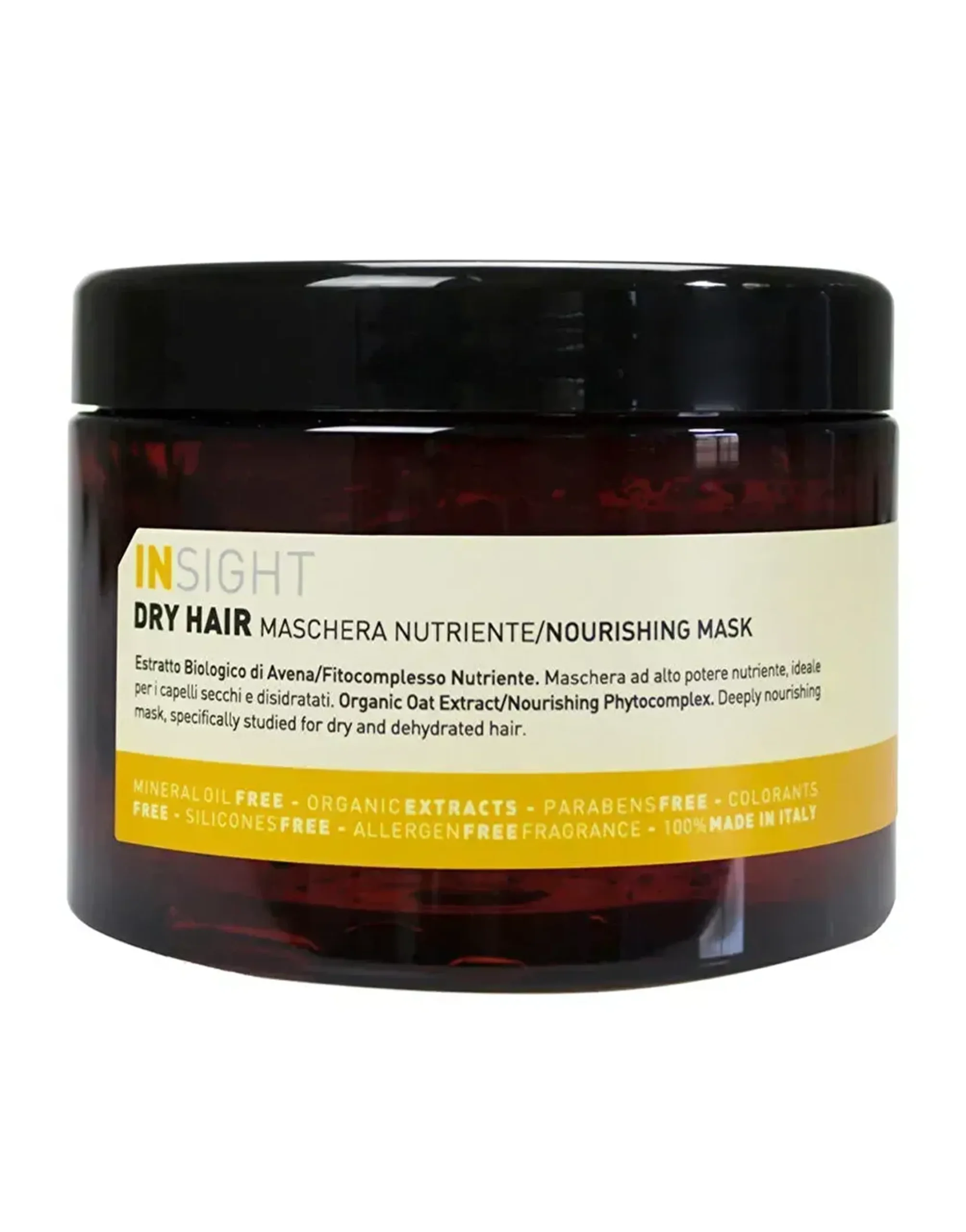 Маска, розроблена для сухого зневодненого волосся, яке стане м’яким і блискучим з першого застосування. Його формула була розроблена для живлення сухого волосся, яке легко ламається. Містить органічний екстракт вівса та живильний фітокомплекс (кокосова олія, масло іліпе, олія солодкого мигдалю).
