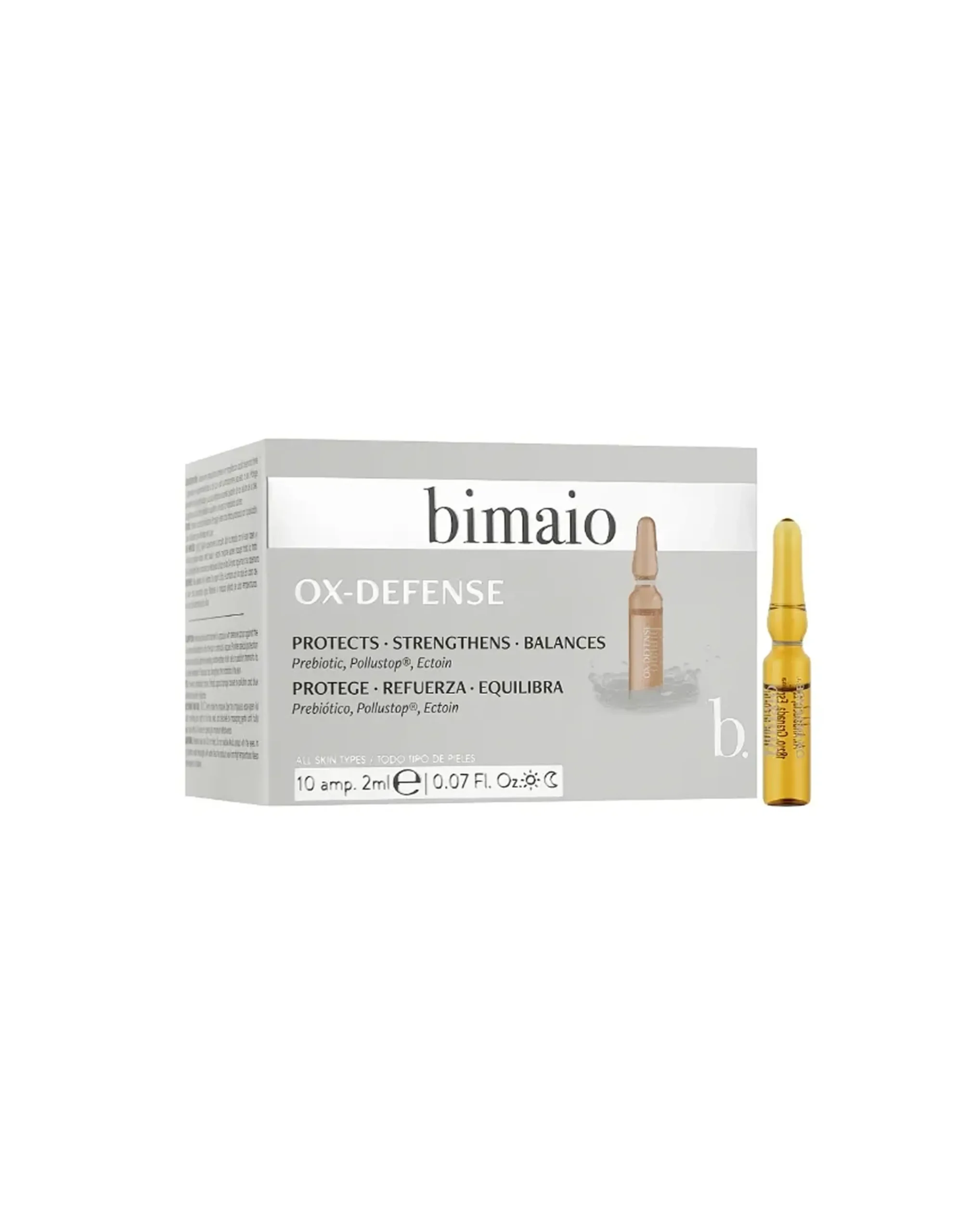 Las ampollas Ox-Defence para el rostro de Bimaio contienen un suero activo con un potente efecto antioxidante. La fórmula se basa en potentes ingredientes que combaten el fotoenvejecimiento y neutralizan los efectos nocivos de los radicales libres. Con el uso regular de las ampollas, la microbiota de la piel se fortalecerá y la barrera natural será más capaz de responder a los rayos UV y otros factores externos negativos.
