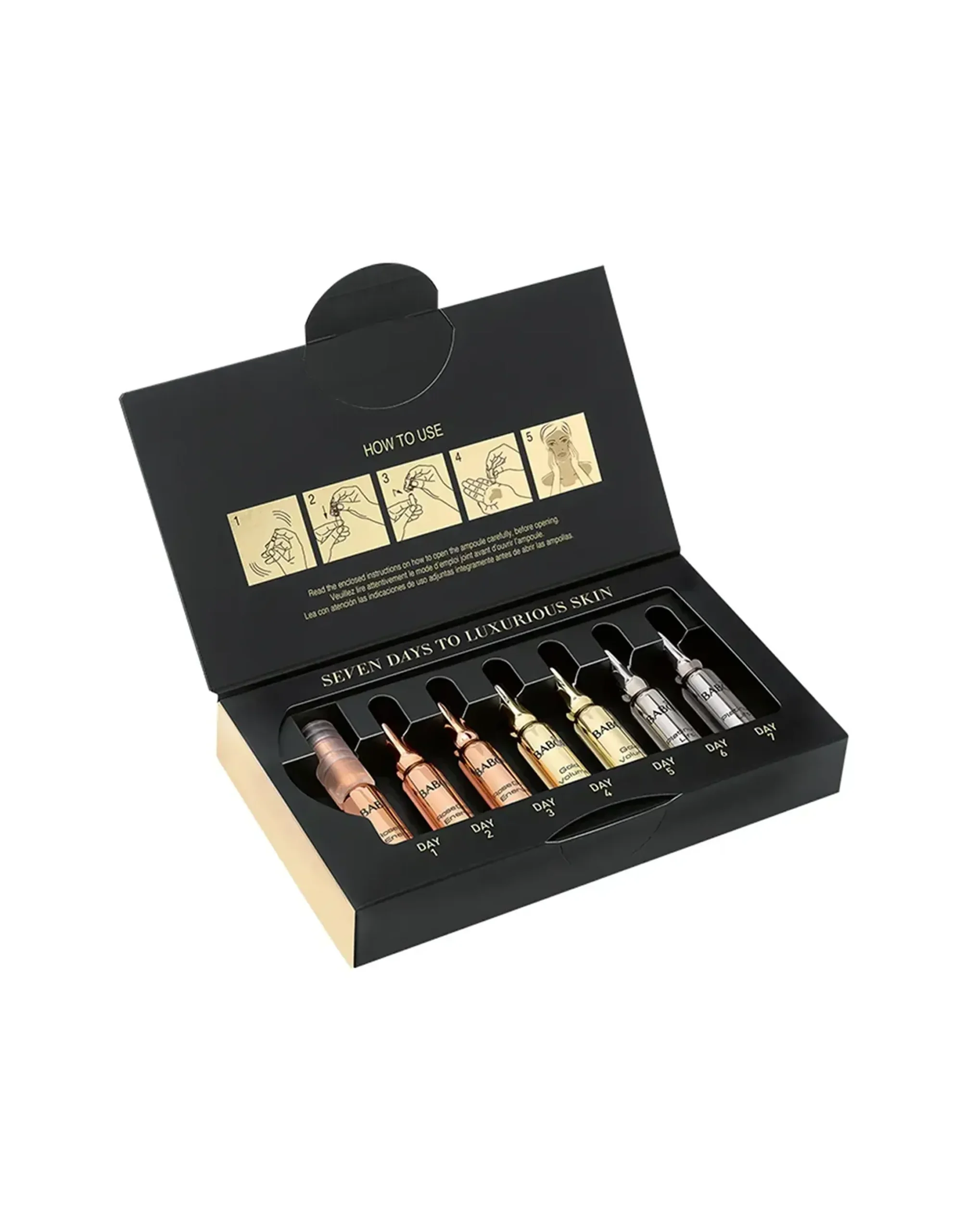 Містить сім концентратів в ампулах для ефективного догляду за обличчям. Для помітно свіжішої, повнішої та інтенсивно підтягнутої шкіри. Ампули для 7-денного лікування для ефективного захисту від старіння шкіри. Високоякісні інгредієнти ампул Babor дарують шкірі потужний заряд енергії, наповнюють її зсередини та миттєво підтягують.